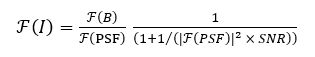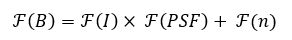 This way, the complex convolution operation (Ä) for direct space pixels changes into a simple frequency pixel by pixel multiplication (x). This equation can be solved for I if PSF and n are known, giving: