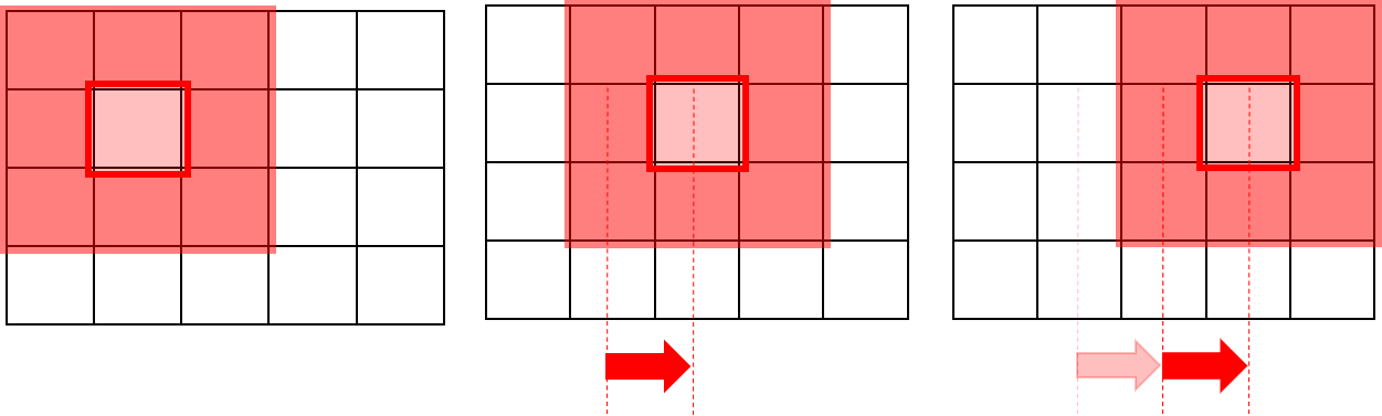 If one considers that neighbourhoods of pixels 3 x 3 in dimensions (Figure 2) are used for the procedure (square blocks composed of 3 pixels in width by 3 pixels in height), it is the pixel at the centre of this matrix (or kernel) for which a new value is generated. The square then moves one pixel across, and the process repeated. It will continue in this manner (moving down to a new row once the end of the current row is reached) until a new image is created consisting of the new pixel values. Kernels are generally composed of odd numbers of pixels and are centred around a single-pixel (e.g. 3x3, 5x5, 7x7), where the larger the size of the kernel, the more processing power required, and thus, the more noise reduction (and thus loss of feature detail) that will occur. These noise reduction processes are a type of low pass filter as they allow low-frequency information to pass whilst reducing high-frequency information [4].