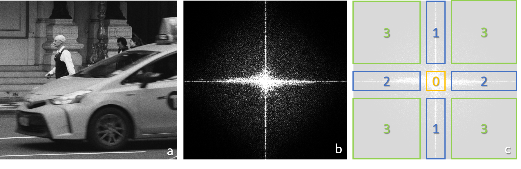 A discussed within our previous article on blur, an image can be represented by its power spectrum. In this spectrum, the image signal is decomposed into a range of high and low frequencies, as demonstrated in Figure 1 a-c. The low frequencies correspond to the slowly varying local average, whilst the high frequencies correspond to both the small details and the inherent noise signal. By suppressing the high frequencies relative to the low ones, the noise signal is attenuated, but at the expense of image detail [1] page 240.