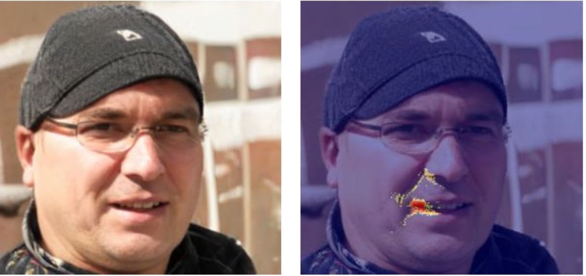 DeepDetector leverages the power of artificial neural networks to make the distinction between real and deepfaked footage. To achieve this, DeepDetector pinpoints the location of the artifacts introduced by the deepfake. This is done in the form of an activation map based on the input, giving a per pixel score allowing the user of the system to have an idea where the deepfake left artifacts.