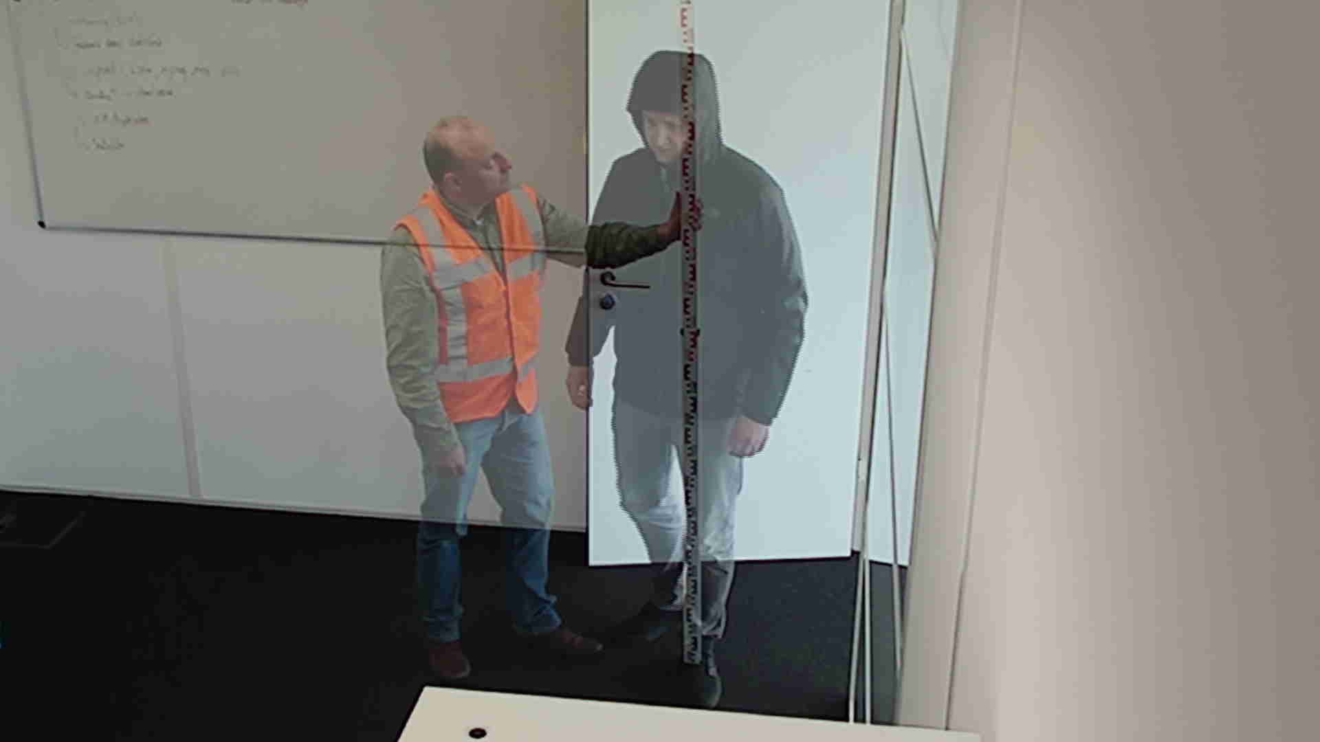 Reverse projection is a quick and very simple way to obtain information about the size of an object or person of interest. By using the same camera as the incident and recreating the scene you can mix the live camera feed with the earlier recording of the object or person (reference). This method will recreate the scene and at the same time eliminate all camera distortions.